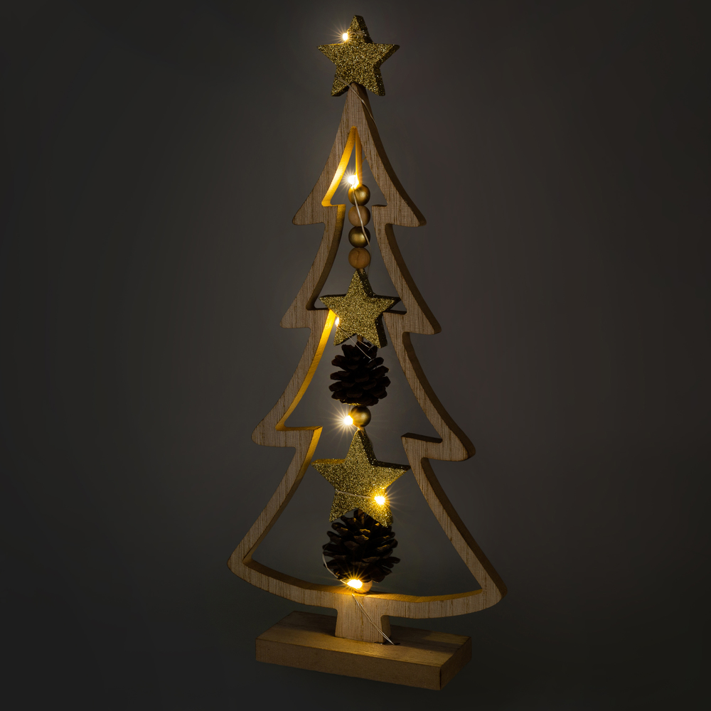 Vánoční strom kombinace dřevo a MDF7 LEDBarva světla: teplá bíláRozměry: 190 x 405 x 56 mmVhodné pouze pro vnitřní použití (IP 20)Napájení: 1CR2032Baterie jsou součástí balení